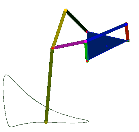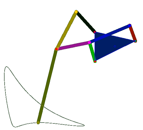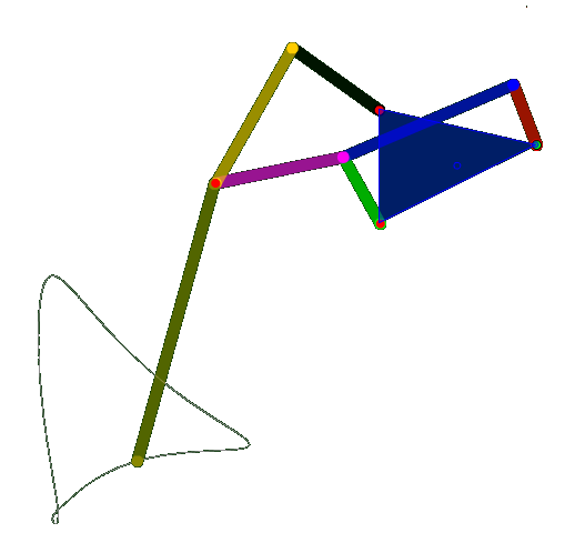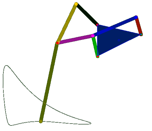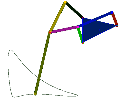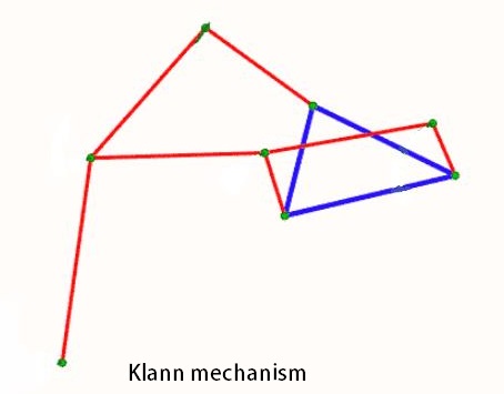 - flash animation of one possible configuration of the Klann linkage at http://www.mekanizmalar.com/mechanical-spider.html where we can change the dimensions of the each link
