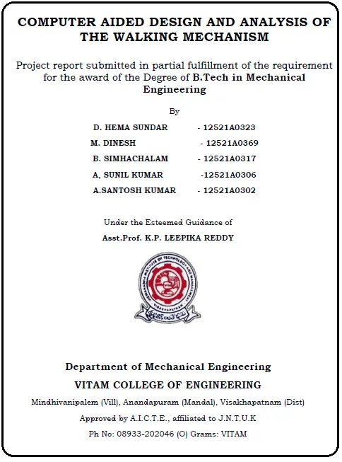 - In order to observe the stress distribution in the kinematic links of leg mechanism to get a safe design of walking robot.