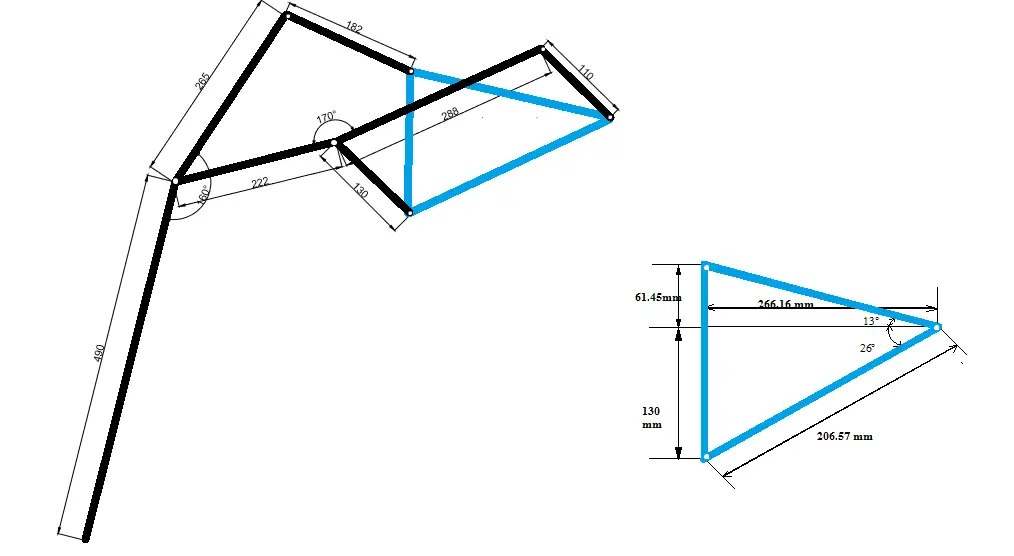 Nice study. One point. The figure 3.1 for the Klann base triangle. I think you need to check the trigonometry cause the lengths are wrong… This seems to be taken directly from another study who made the same mistake. Length 206 is much to short for the detaips provided.