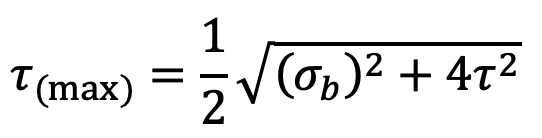 Knowing the values of σb and τ, the maximum principal or shear stress-induced may be checked by using the following relations: